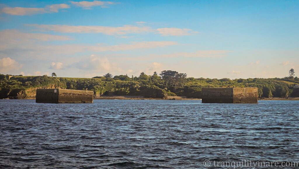 As we approached the anchorage, we were intrigued by enormous concrete blocks standing in the bay. A bit of online research revealed that the Brest area had been heavily expanded by the Germans during World War II as a base for their fleet. It turned out we were passing the very spot where the battleship Bismarck, one of the largest warships of its era, had been intended to moor.