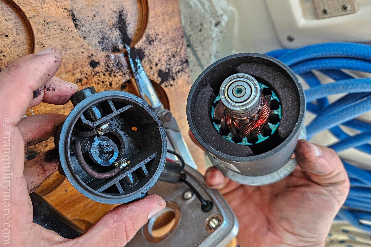 Unfortunately, the May holiday period in France meant nearly two weeks of slowdown, so ordering parts wasn’t an option. The situation was saved by a visit to a power-tool shop and a kind Frenchman who custom-shaped replacement brushes for us from a Bosch drill set. Problem solved.