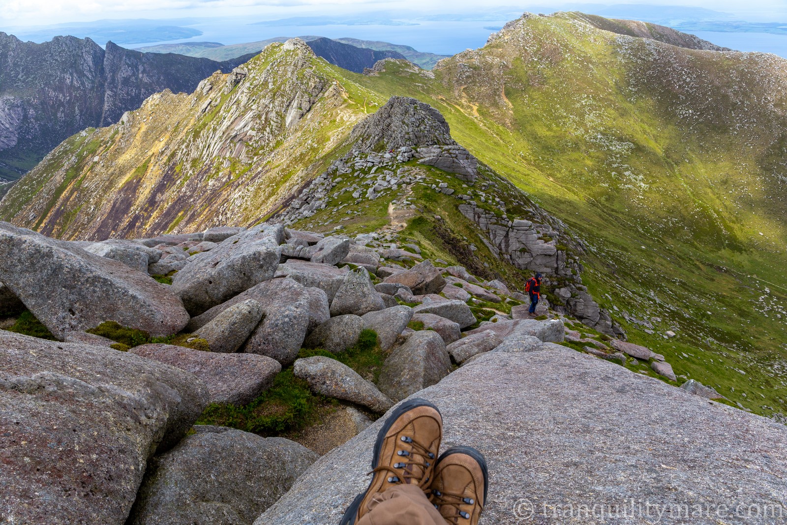Arran is often called “Scotland in miniature” because it has everything that makes this country so special — dramatic mountains, rugged cliffs, green valleys, sheep, the sea, and peaceful silence. We climb the island’s highest peak, Goatfell, wander through the valleys, and simply soak in the island’s unique atmosphere.